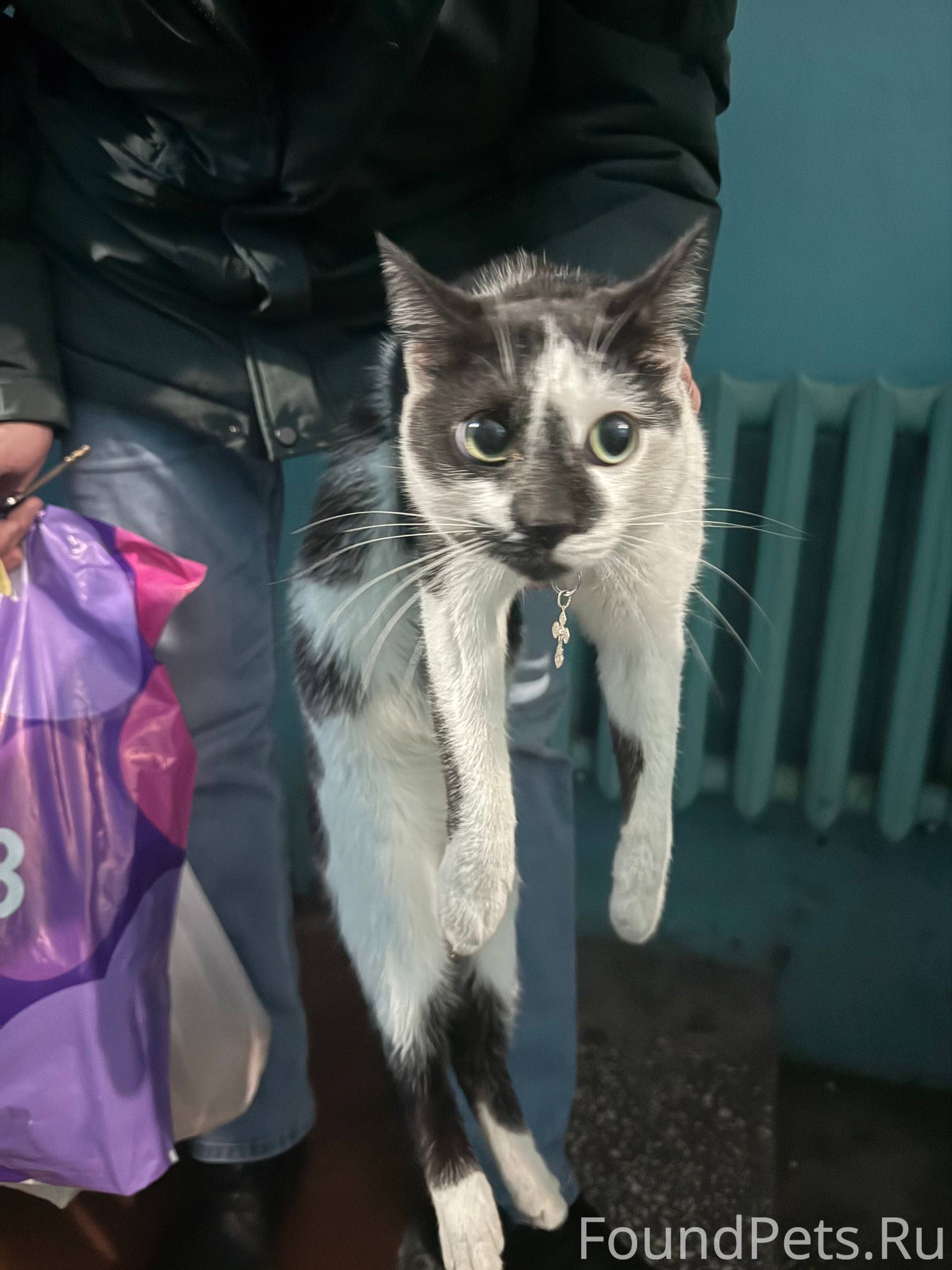 Найден кот, на ошейнике крестик. Находится по адресу улица мира 51, 1 подъезд