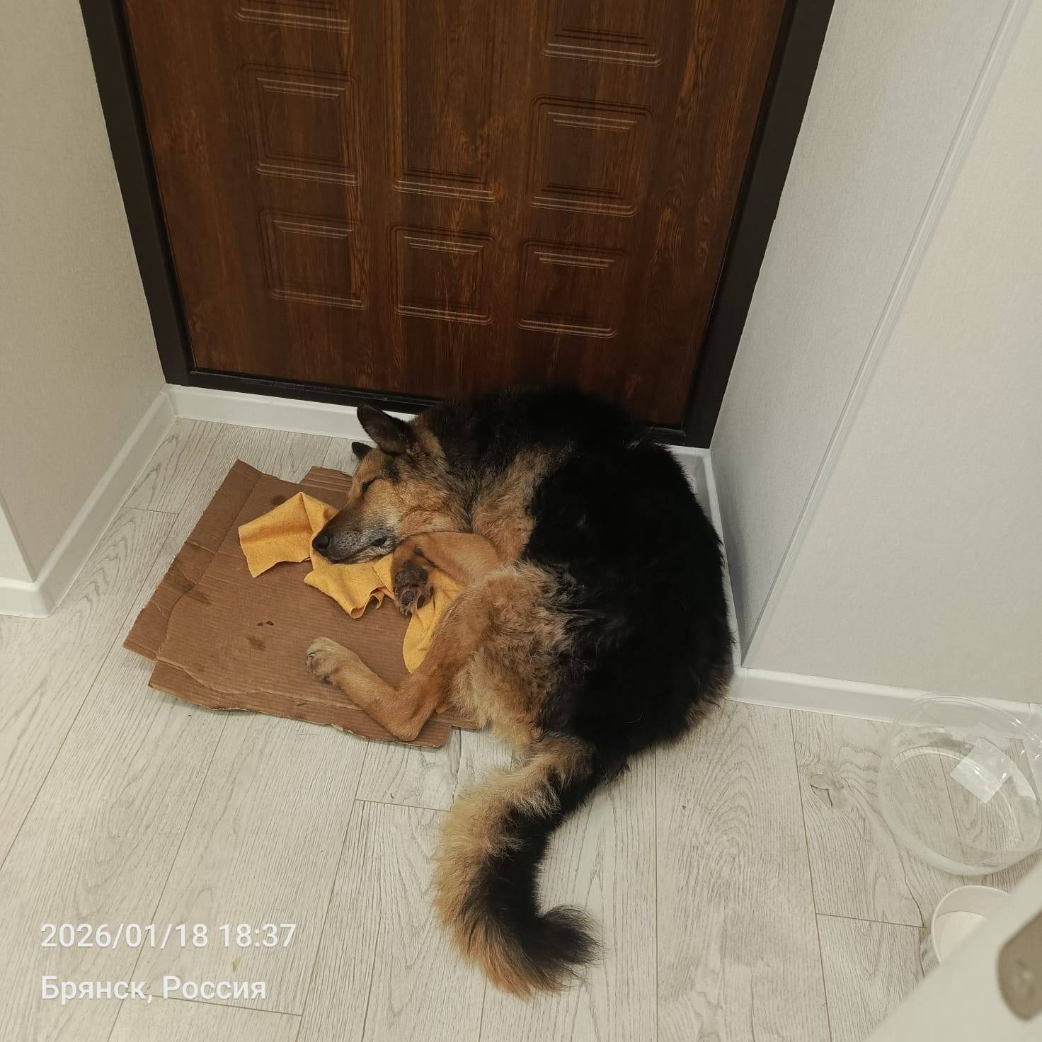 Её сегодня возили к ветеринару, сейчас собака на передержка, завтра...