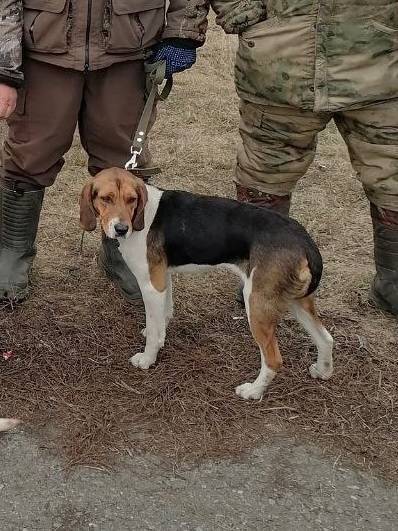 Пропала собака. Эстонская гончая. 27.12 25 видели на трассе в районе Сергиевки, бежала в сторону Губкина. На собаке ошейник с антенной.