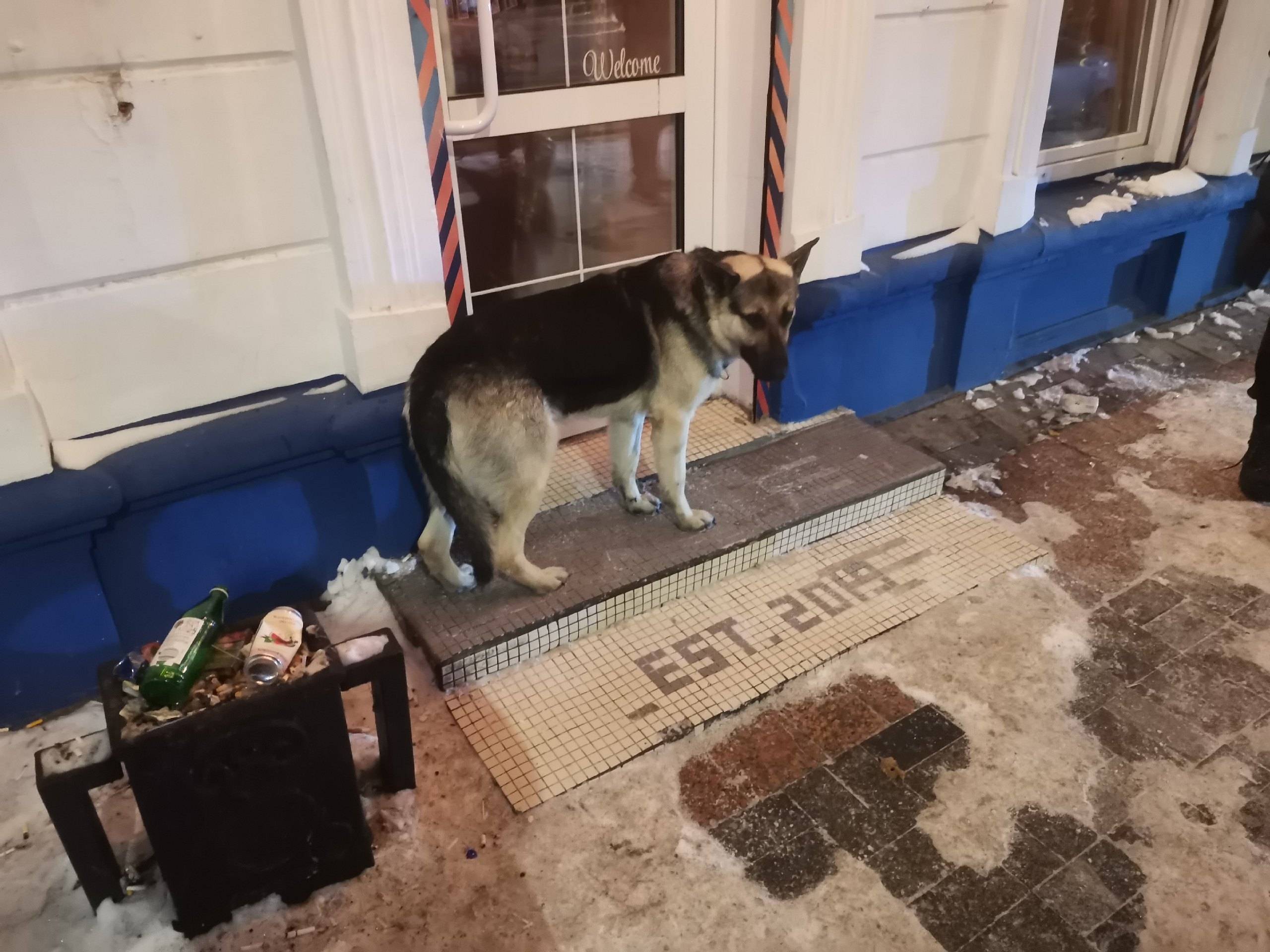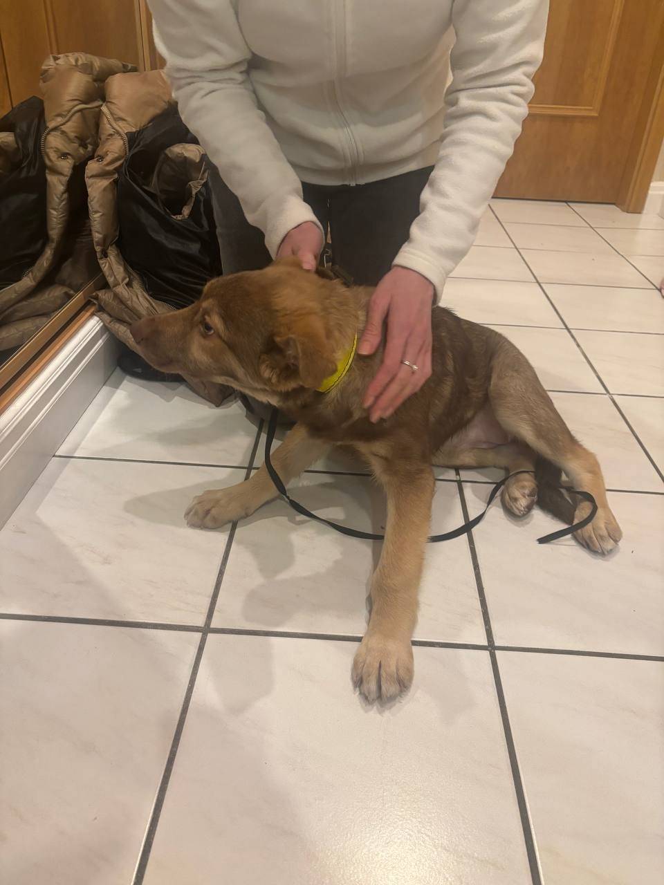 Чей потеряшка? Взять на передержку женщина не смогла, собака на улице. Номер для связи на фото.