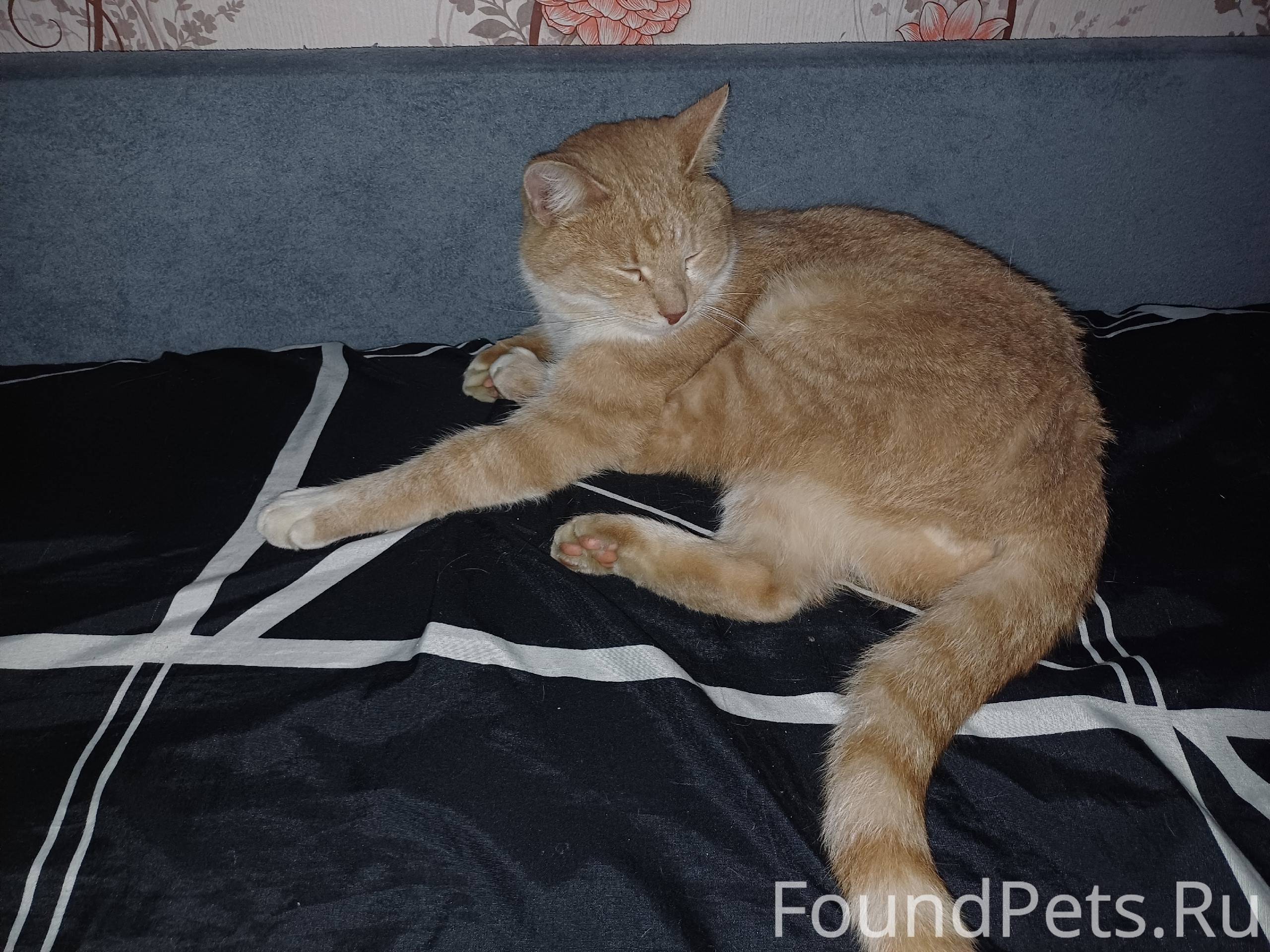 Найден кот на улице Октябрьской 2Г. Рыжий с беленьким, на нем имеется красный ошейник от блох. По коту видно, что домашний.
