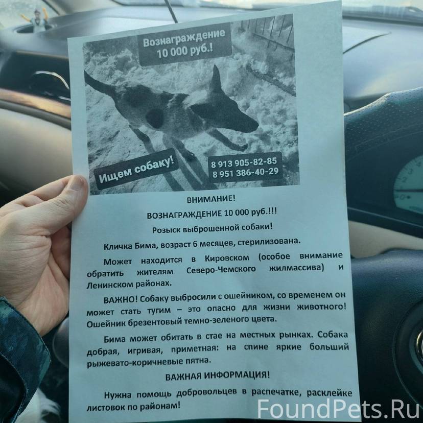 Потерялась собак, а зовут Дина.
