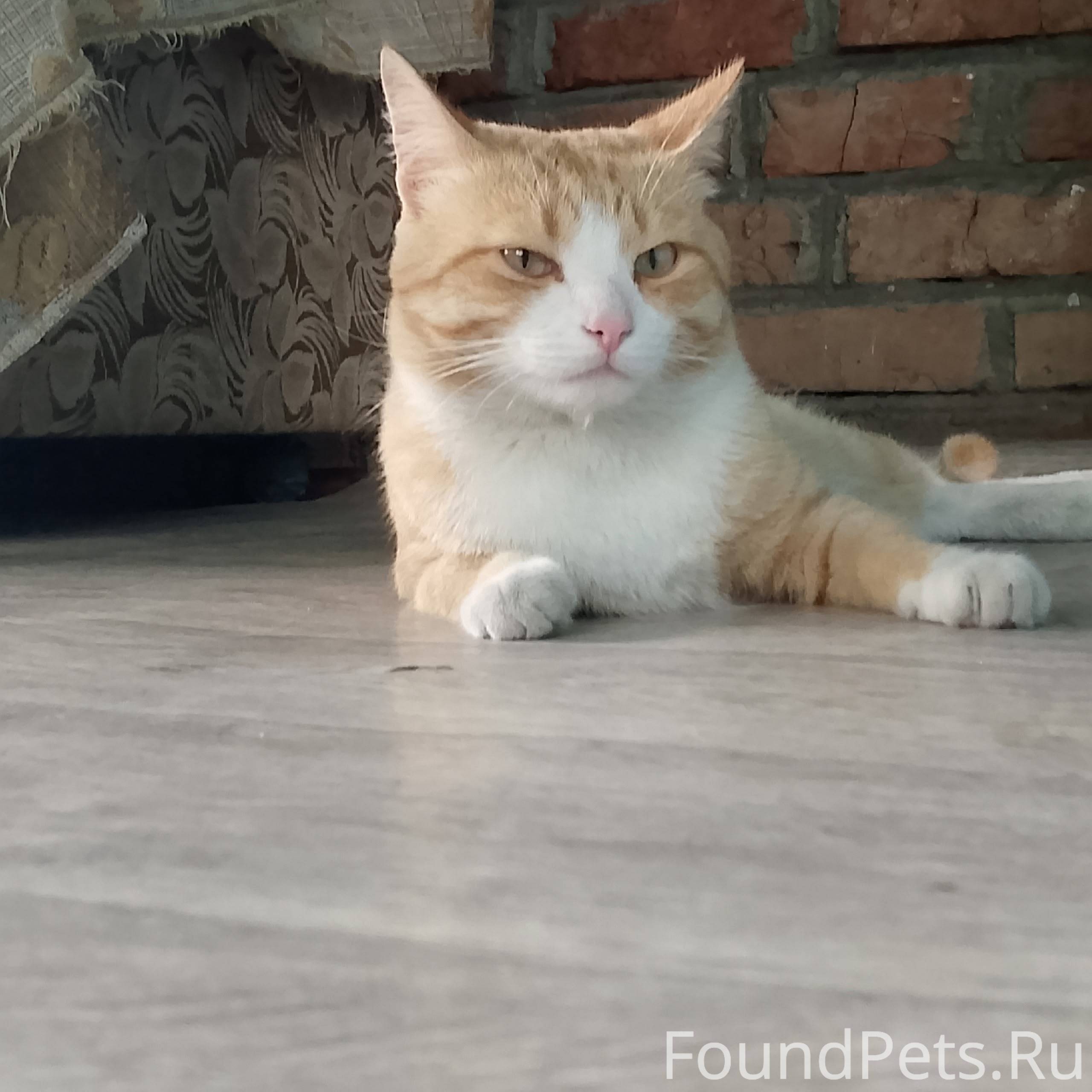 Приметы: рыже-белого цвета, мордочка в виде бантика, хромой на одну ногу.