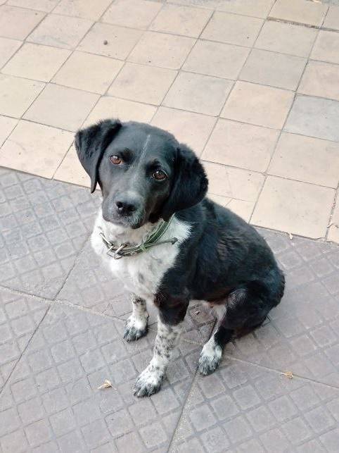 Особые приметы: короткий хвост(купирован), лапки и грудка белые с серыми пятнышками, был ошейник...