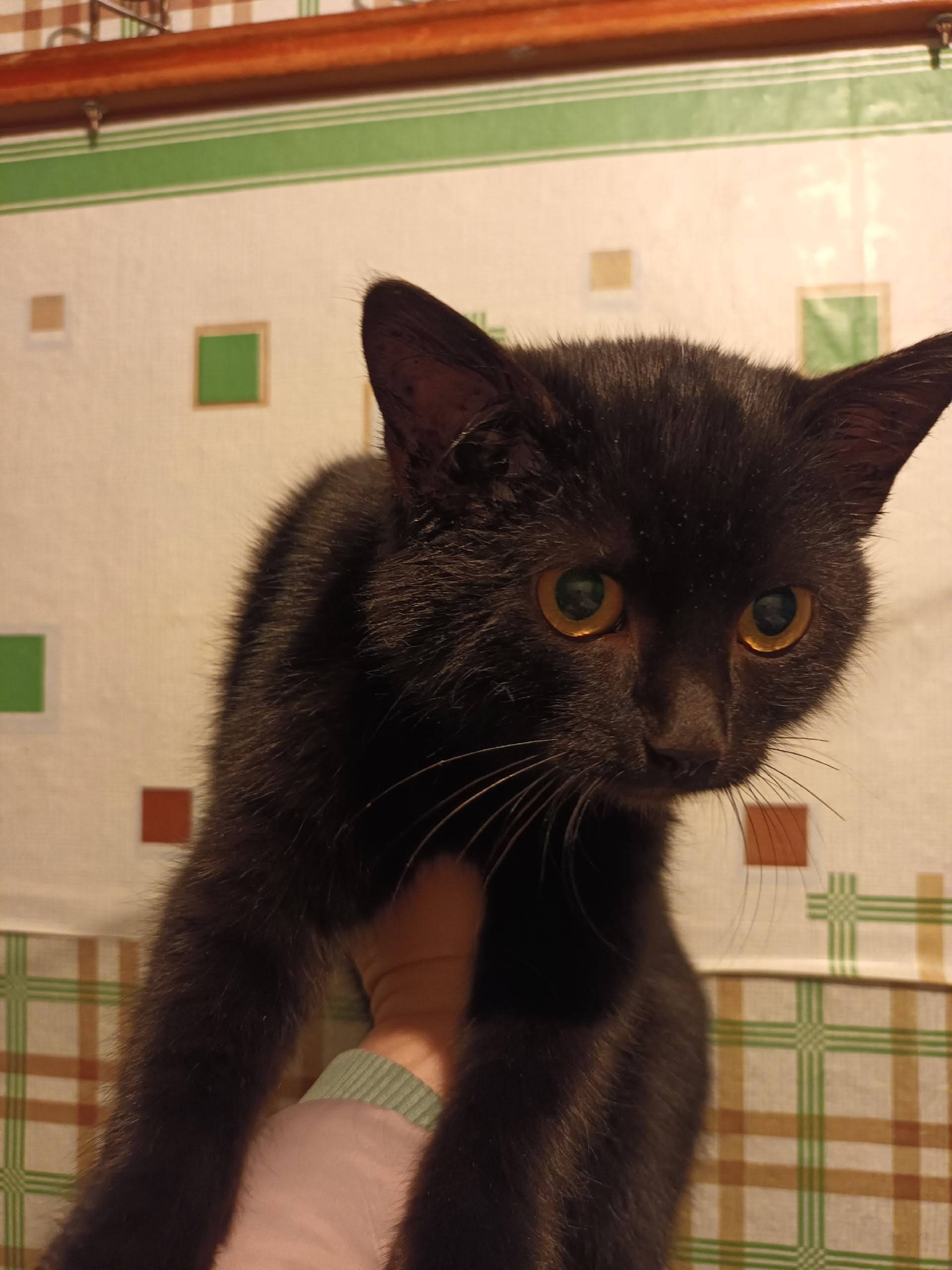 Добрый день. Супруг нашёл вот такого которебенка возле магазина Днс в среду. Оооочень нежный и ласковый мальчик, шерстка чистая блестит. Худенький очень. На вид ему 2-3 месяца Людей любит, на руках нр...