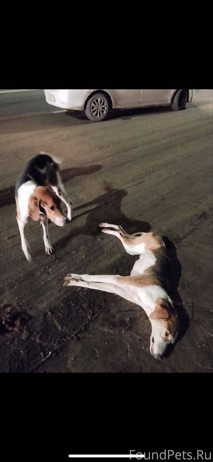 На Московской трассе девушка нашла собак. 2 очень истощенные гончие. Девочку сбила машина! Лежала без движения. Мальчик ни на шаг от нее не уходил Просил помощи.