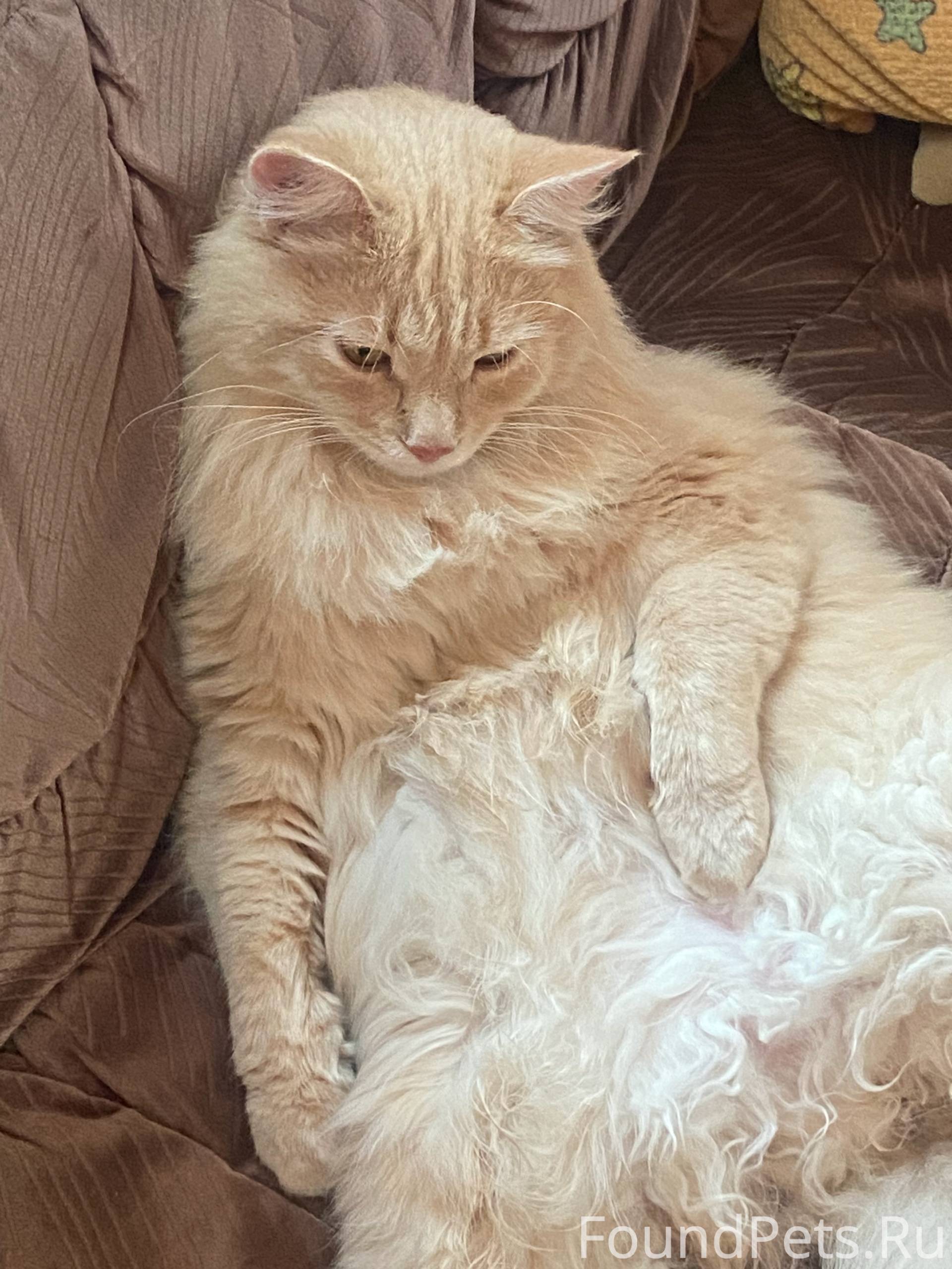 2 года. Персиковый, пушистый очень. Ушел с дачного участка в сильный дождь 19 июля.