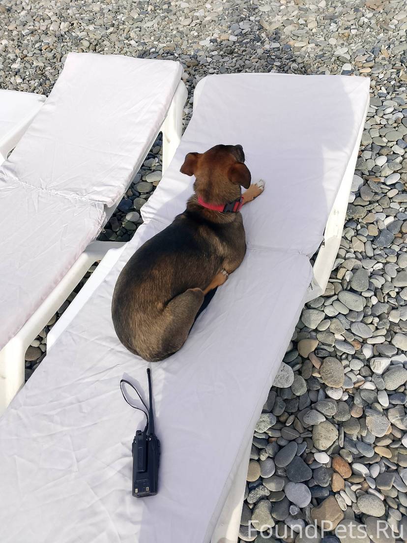 Собака с ошейником, наверное потерял кто то, пляж маяк