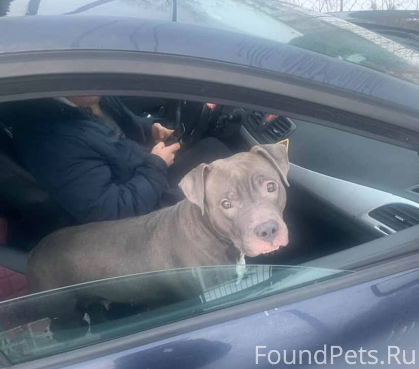 Пожалуйста пес боится, он не знает местности, порода пидбуль.