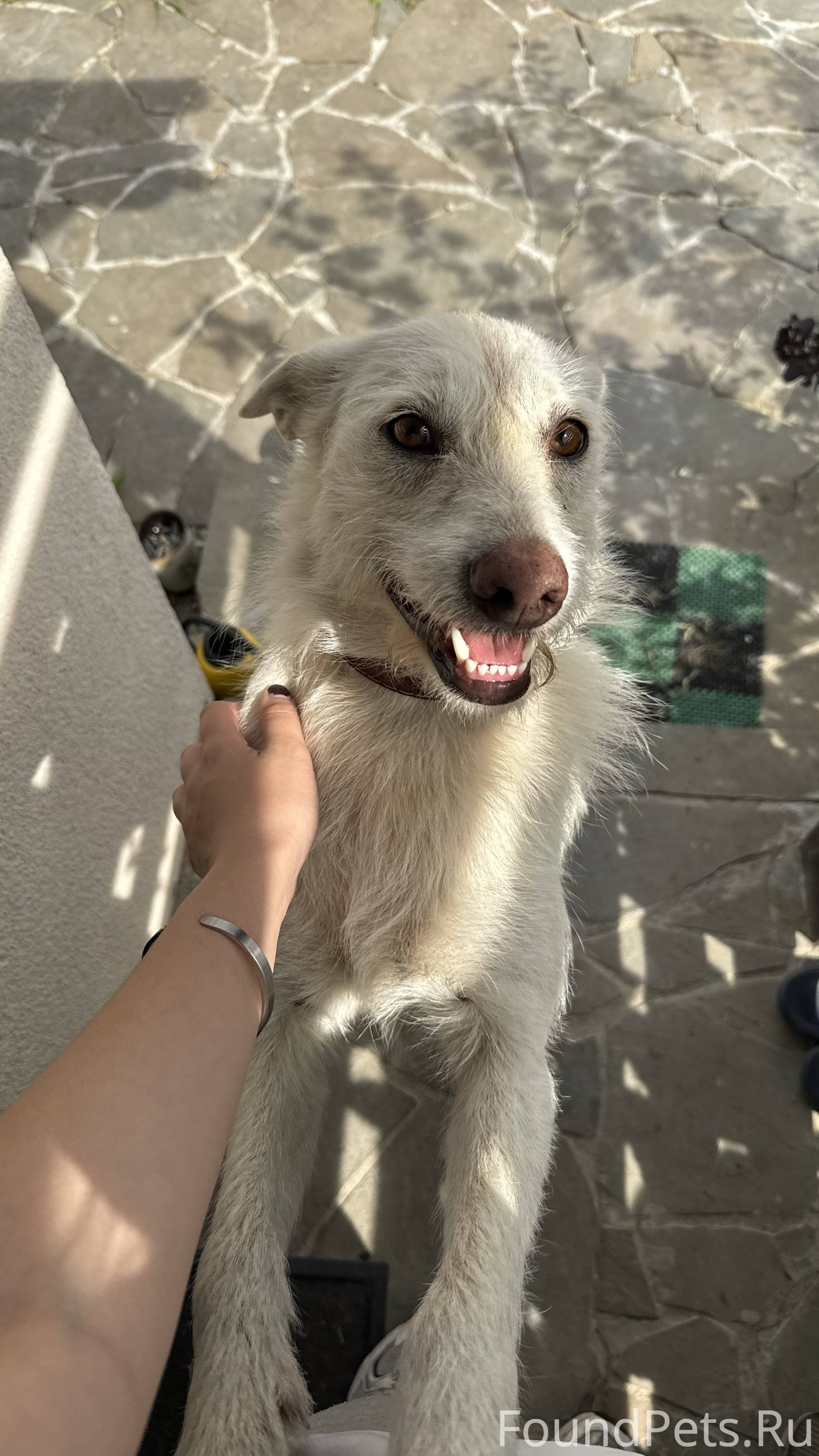 Белая дворняжка, кличка Тесса, коричневый ошейник. Добрая. Звонить на номер 89109076684
