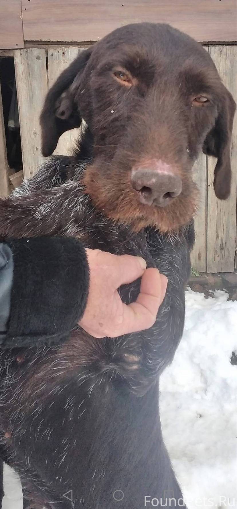 Джек-имя этого шоколадного красавца дратхаара. Возраст около 2 лет. Был найден в марте 2025 года в посёлке Куровское Калужской области. Рядом Барыбино. Спрашивали у охотников, давали объявления, но поиски хозяев результатов не дали. Его временно приютили, но ему нужен свой дом, свой человек - хозяин!