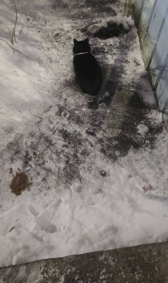 Найден кот напротив тк Северо-западный. В красном ошейнике с отражающей полоской. Ищет старого хозяина