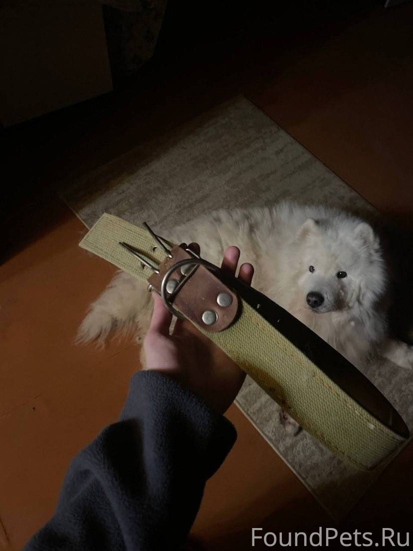 Найдена собака, девочка, породы самоедская лайка, шла по Волоколамскому шоссе в сторону д. Дуплево. Придержали у себя, ищем прежних хозяев.
