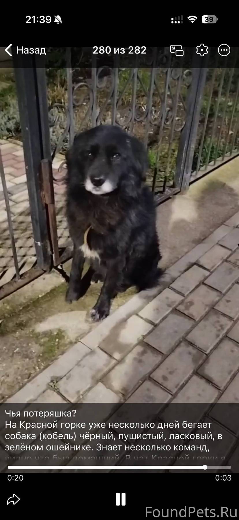 На Красной горке уже несколько дней бегает собака (кобель) чëрный, пушистый, ласковый, в зелëном ошейнике. Знает несколько команд, видно что был домашний. В чат Красной горки я размещала фото и объявление, но хозяин не отзывается. У соседей и знакомых спрашивала, никто его не знает, может из другого района прибежал, заблудился. Очень нужна помощь в поиске хозяина, старого или нового. Дети на улице с ним играют, он даëт лапу, умеет сидеть по команде. Пëс очень ласковый, никакой огрессии не проявляет, ни к другим собакам, ни к котам, ни к людям. На улице Танкистов я его видела с 04.01.2026, на других улицах Красной горки его видели ещё неделю назад примерно, точнее сказать не могу.
