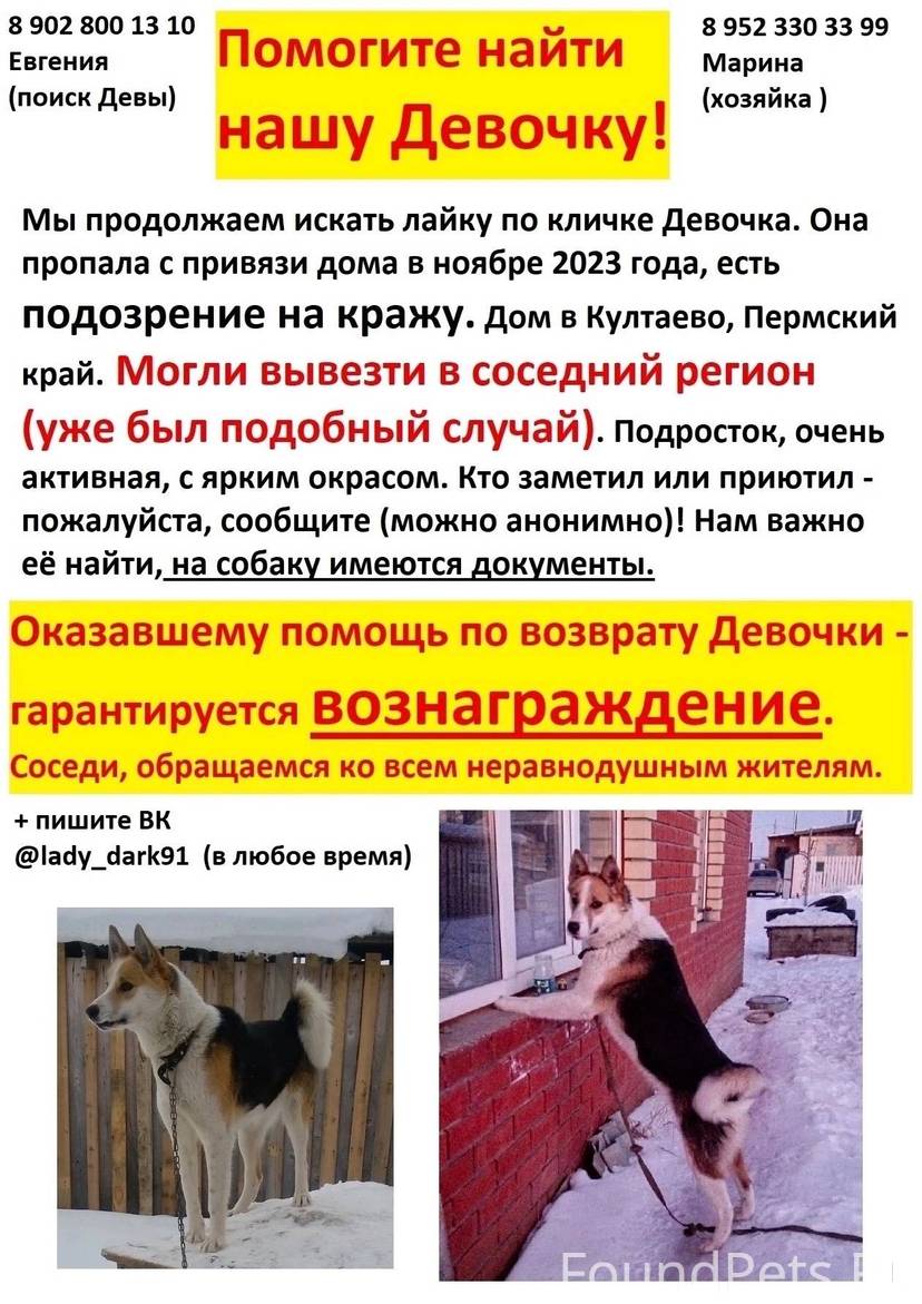 Мы не теряем надежды её найти Мы продолжаем искать лайку по кличке Девочка и не теряем надежды её вернуть домой
