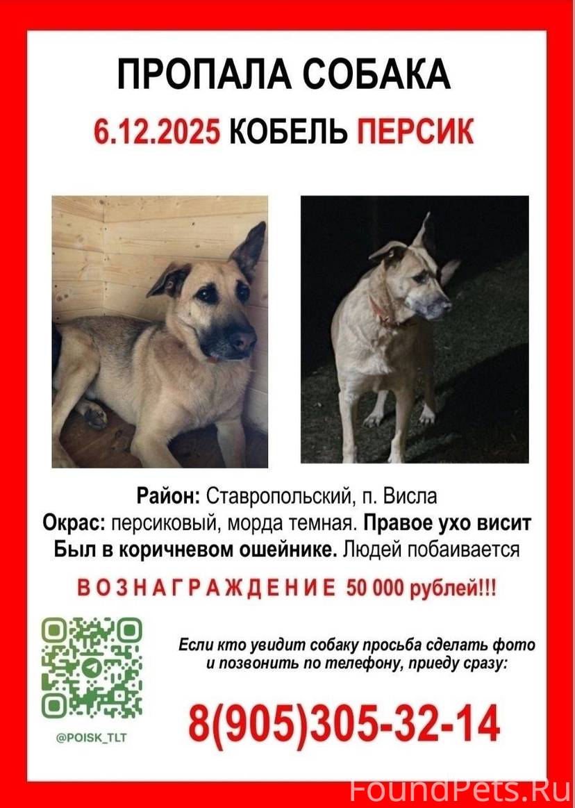 Помогите найти собаку, зовут персик. Вознаграждение