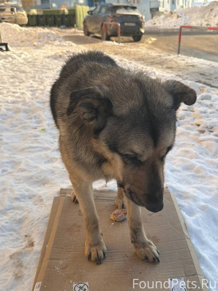 В районе Губанова во двор пришел пес, обморозил себе лапы