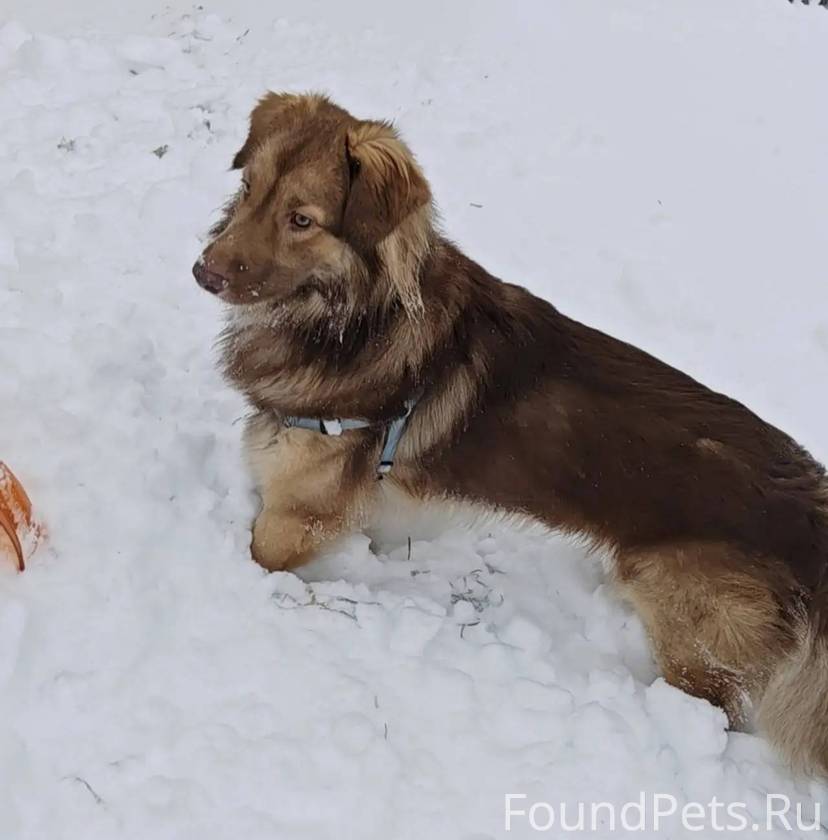Щенок,1.5 года. Рыжий ошейник, голубая шлейка. Зовут Тихон, боится людей, не агрессивный