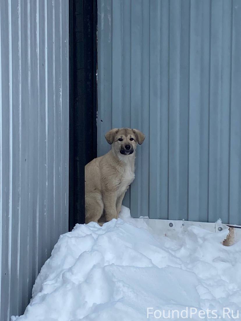 Сейчас щенка отогнали от основного входа в организацию (к запасному входу здания около стоянки машин), малыш сидит на снегу, вжавшись от страха в угол забора… приблизится не дает, убежать ему тоже некуда.