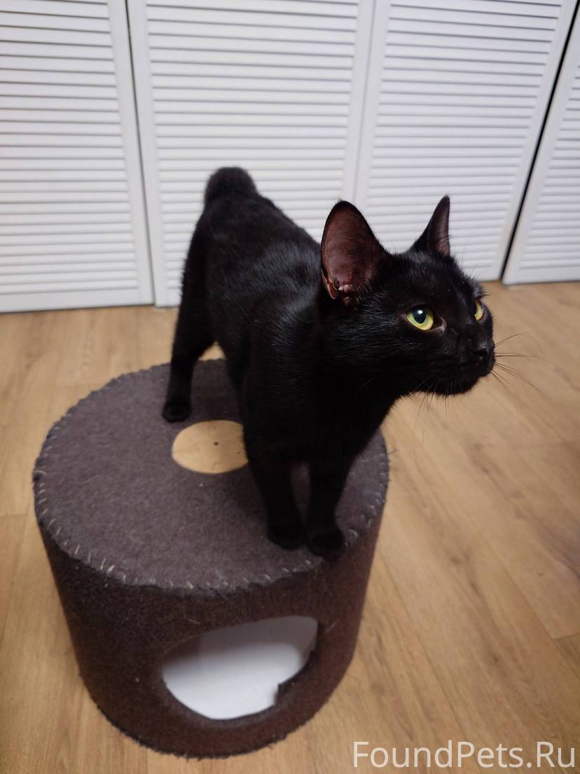 Найдена кошка черного цвета, возраст около года. Бегала в районе автовокзала, ул. Стахановская д.19. На вид чистая, домашняя, очень ласковая. Кто потерял? Временно приютили у себя, на улице мороз. Обращаться по телефону 89113900611 Юлия или писать в личку.